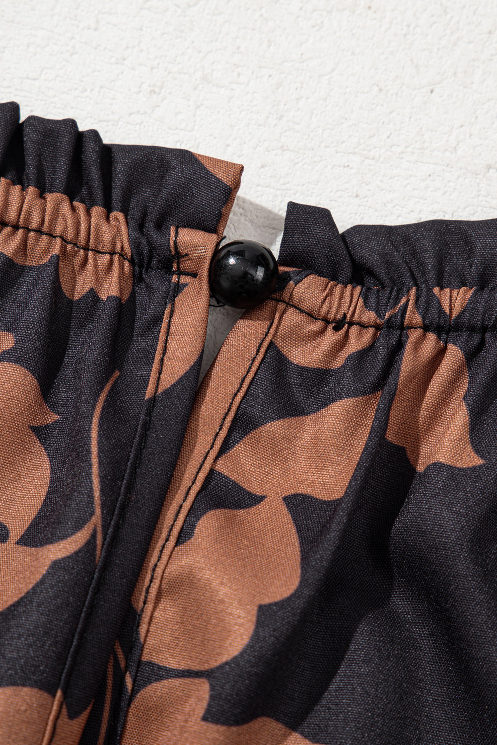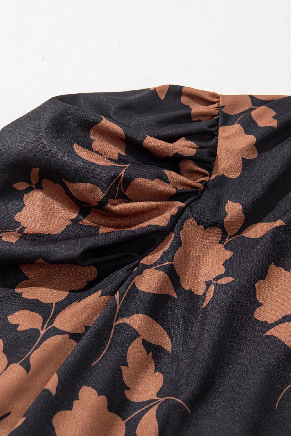 Chestnut Floral Print Frill Neck Bubble Sleeve Blouse